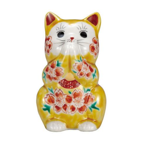 九谷焼 3 2号 お祈り猫 黄釉桜 招き猫 K7 1475 おしゃれ かわいい 置物 招き猫 ねこ インテリア 陶器 プレゼント ギフト 開店祝い 飲食店 商売 盛 縁起物 Kitno K7 1475 器茶房 彩庵yahoo ショップ 通販 Yahoo ショッピング